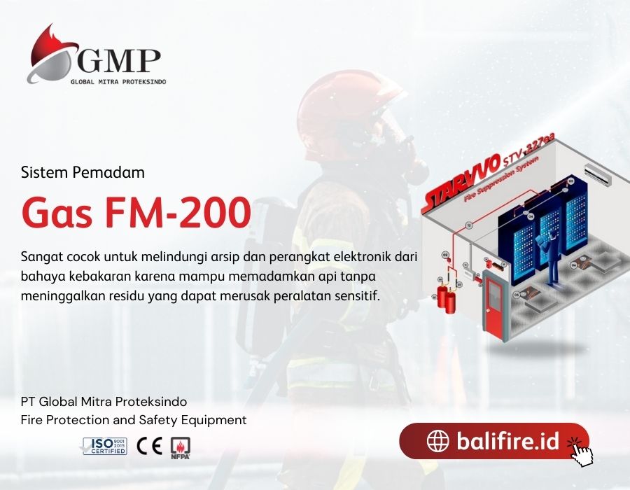 - Sistem pemadam berbasis gas FM200 sangat cocok untuk ruangan dengan peralatan elektronik atau arsip penting karena tidak meninggalkan residu yang dapat merusak perangkat sensitif.